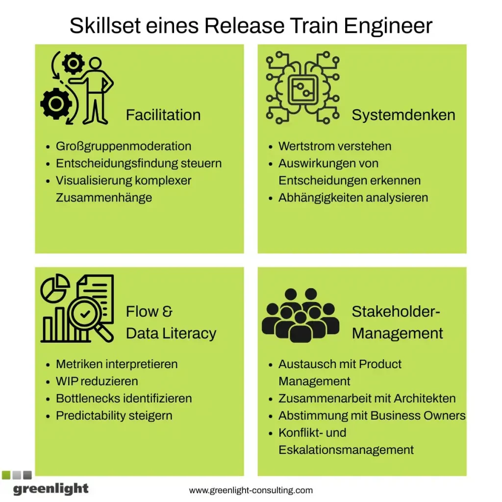 In diesem Bild wird das Skillset eines Release Train Engineers beschrieben